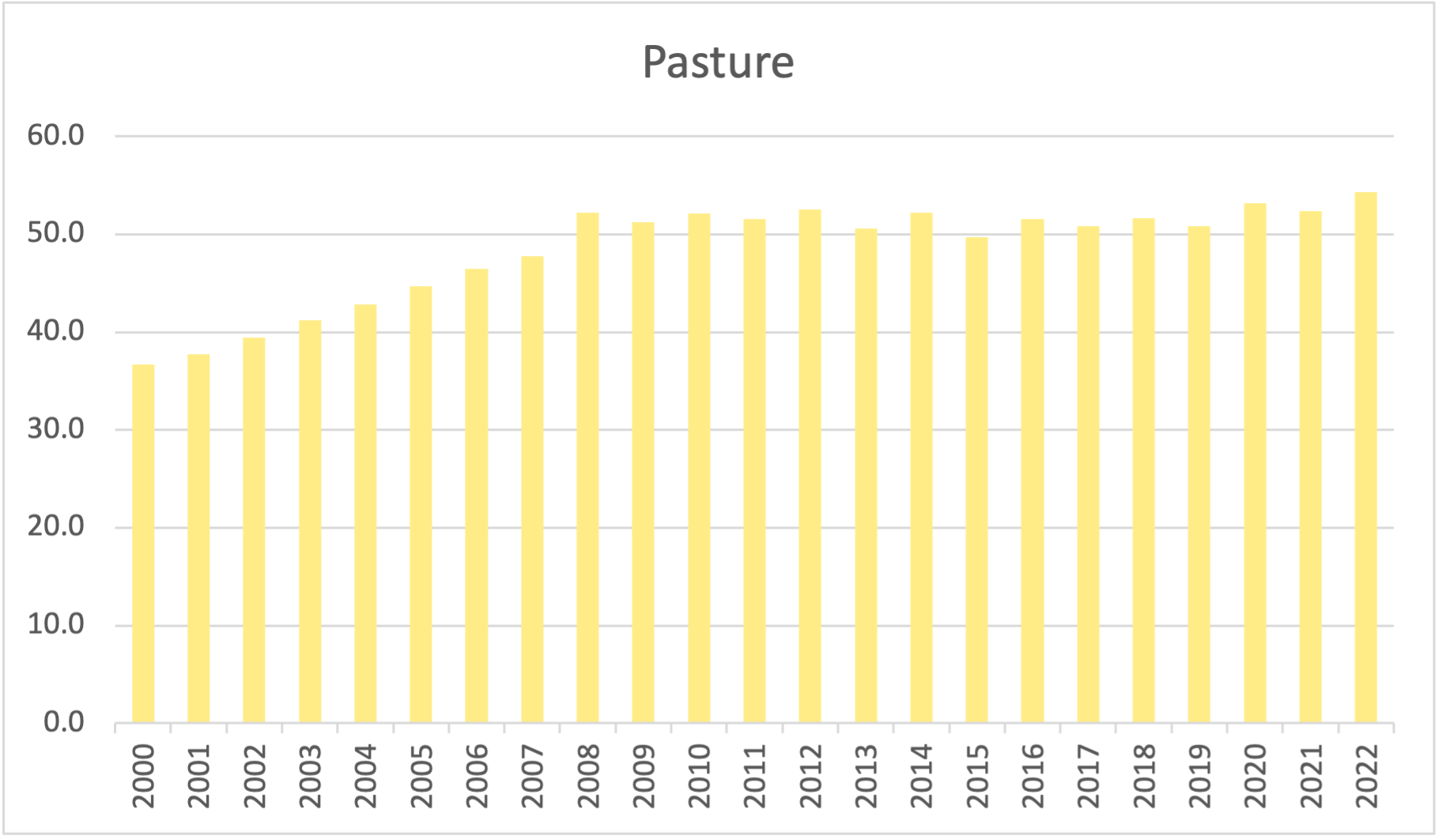 The pasture area has remained fairly constant since 2008, ranging from 51 Mha to 54 Mha. One can speculate that this could be an effect of the Soy Moratorium. Working in Mato Grosso, Picoli et al. [1] provide evidence that soybean expansion has caused indirect impacts by replacing pasture areas and causing pasture expansion elsewhere. Therefore, annual agricultural caused an indirect land-use change effect, since the expansion of croplands takes place on pasture areas.